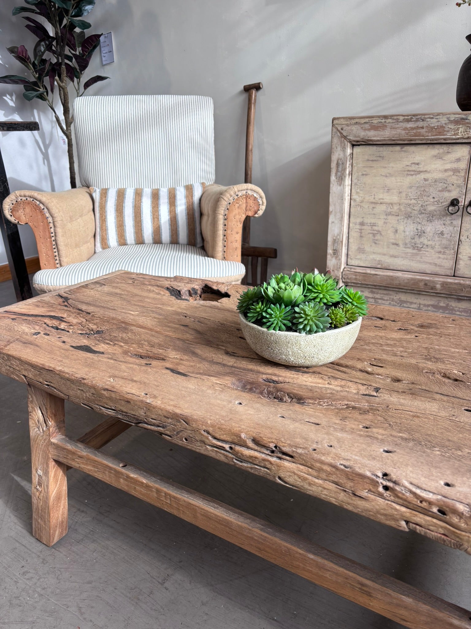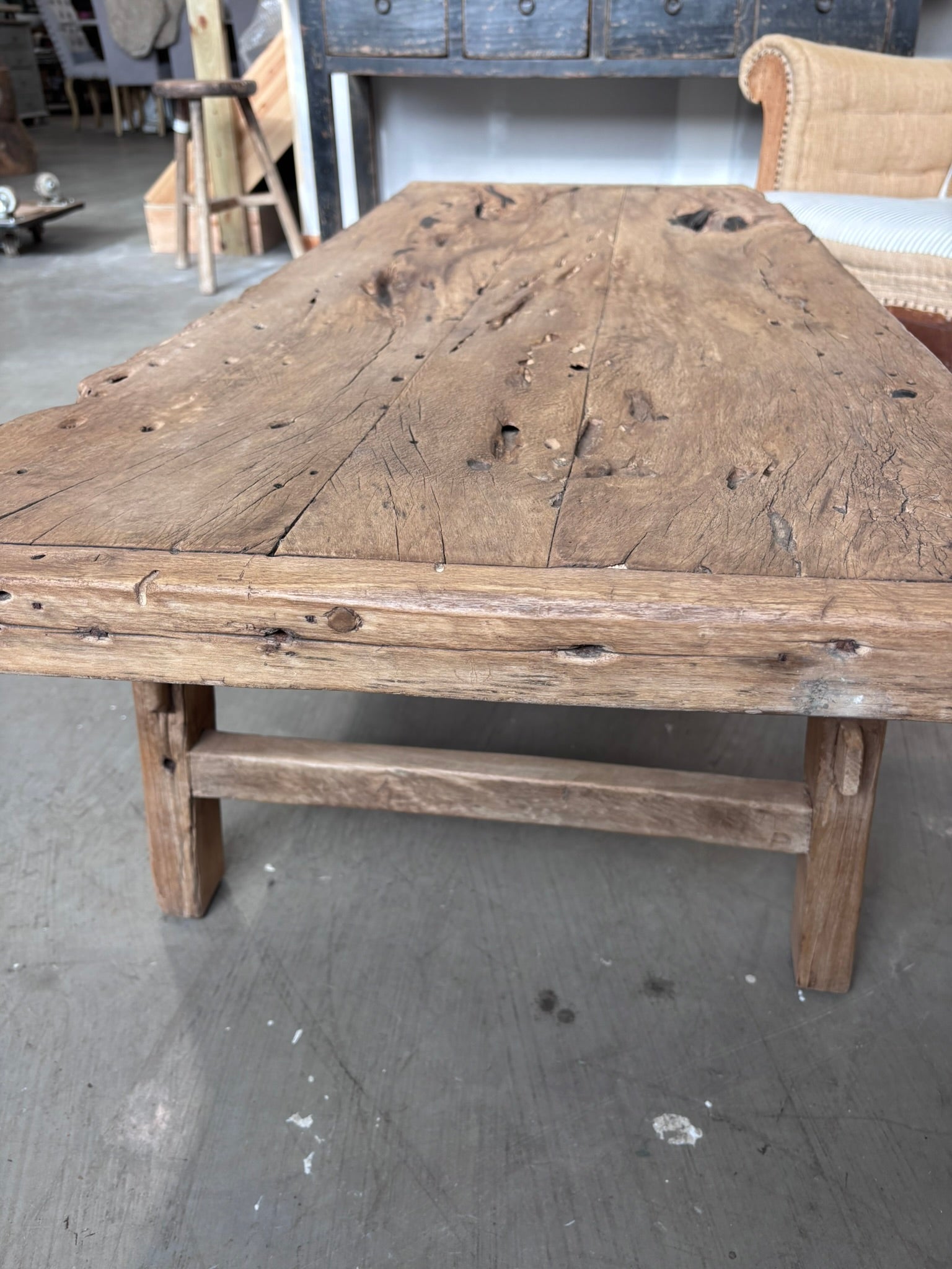 Each of our coffee tables is an authentic antique, handcrafted from elm and over a century old. Their timeworn surfaces tell a rich story of history and age, making every piece truly one of a kind.