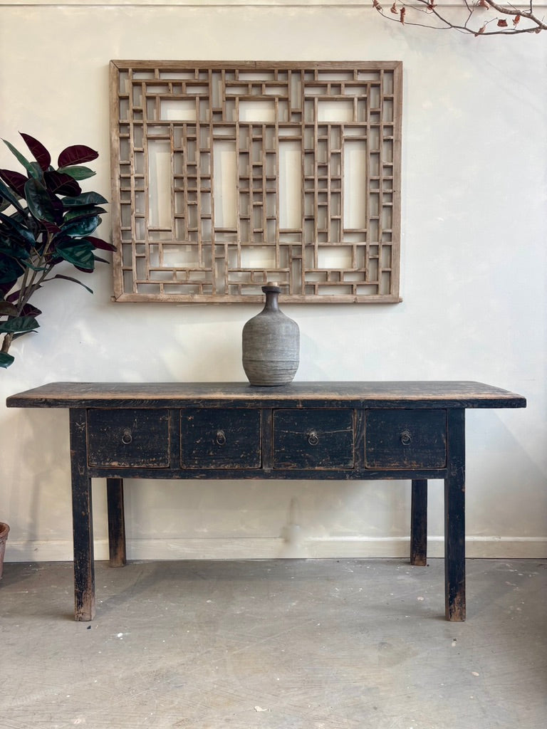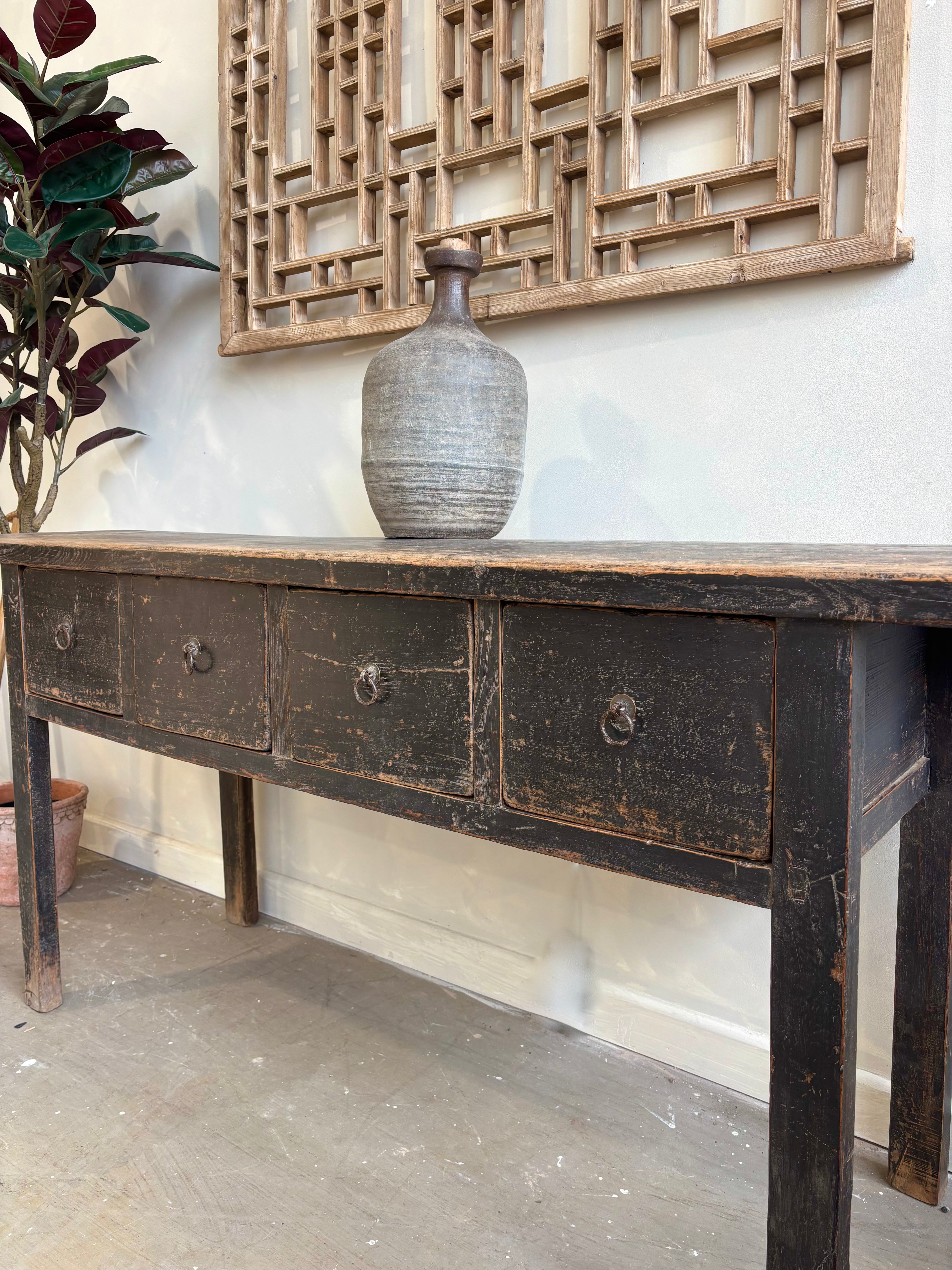 Bring character and charm to your home with this antique console table it is the perfect companion for the modern bohemian or coastal home. Four spacious drawers provide practical storage, making it as functional as it is stylish.