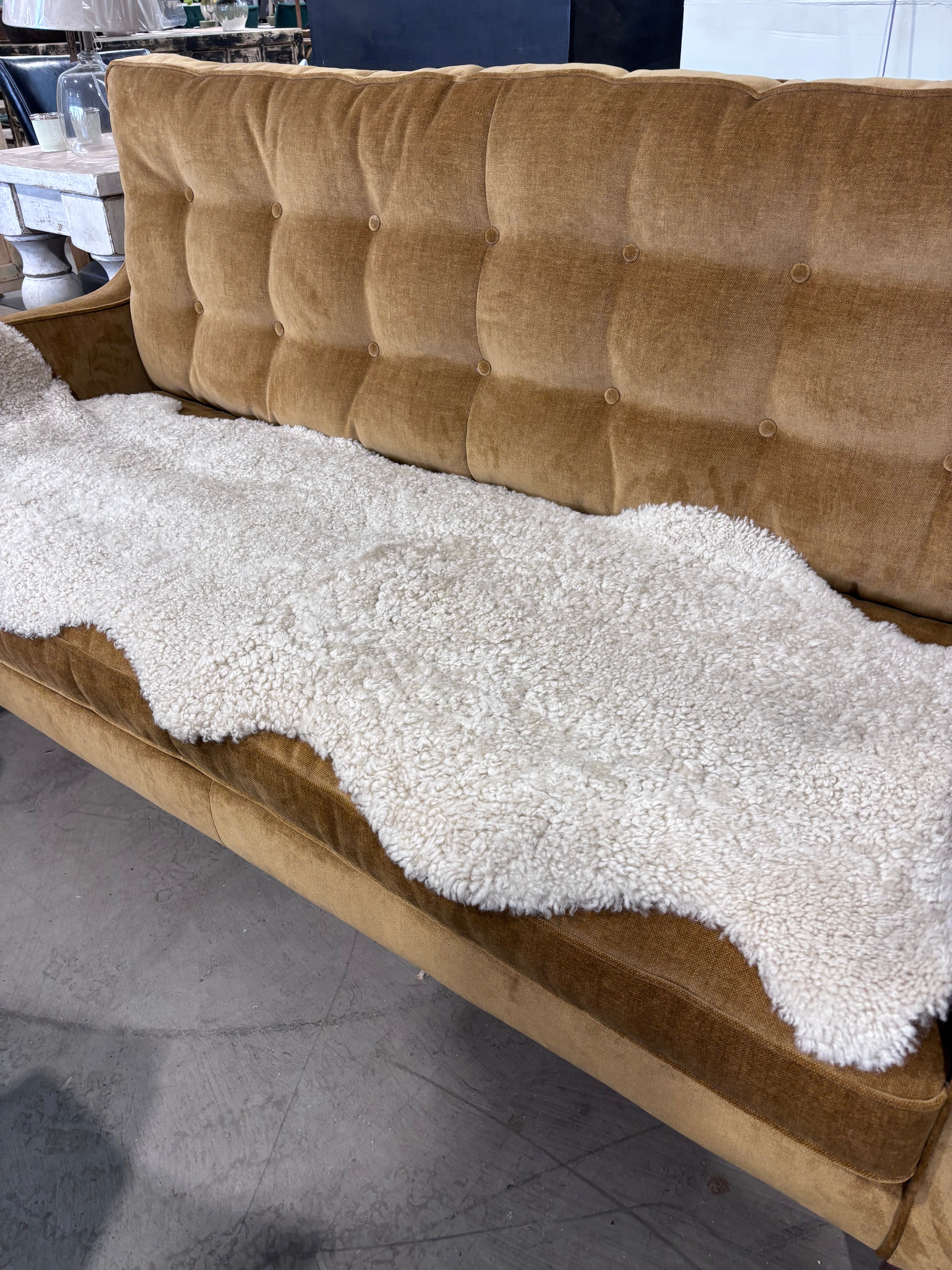 Indulge in luxurious comfort with our sheepskin rugs. Crafted by hand by our neighbours Devonia the oldest Tannery in Britain on the edge of Dartmoor. These soft, natural sheepskins, add warmth and texture to any space. Its plush, short tight curl like a bouclé fabric provides a cosy retreat for you to relax on, while the timeless design effortlessly complements any interior style. The Double is two sheepskins sown together. Elevate your home with the timeless elegance of our sheepskin rug. This sheepskin has been dyed.