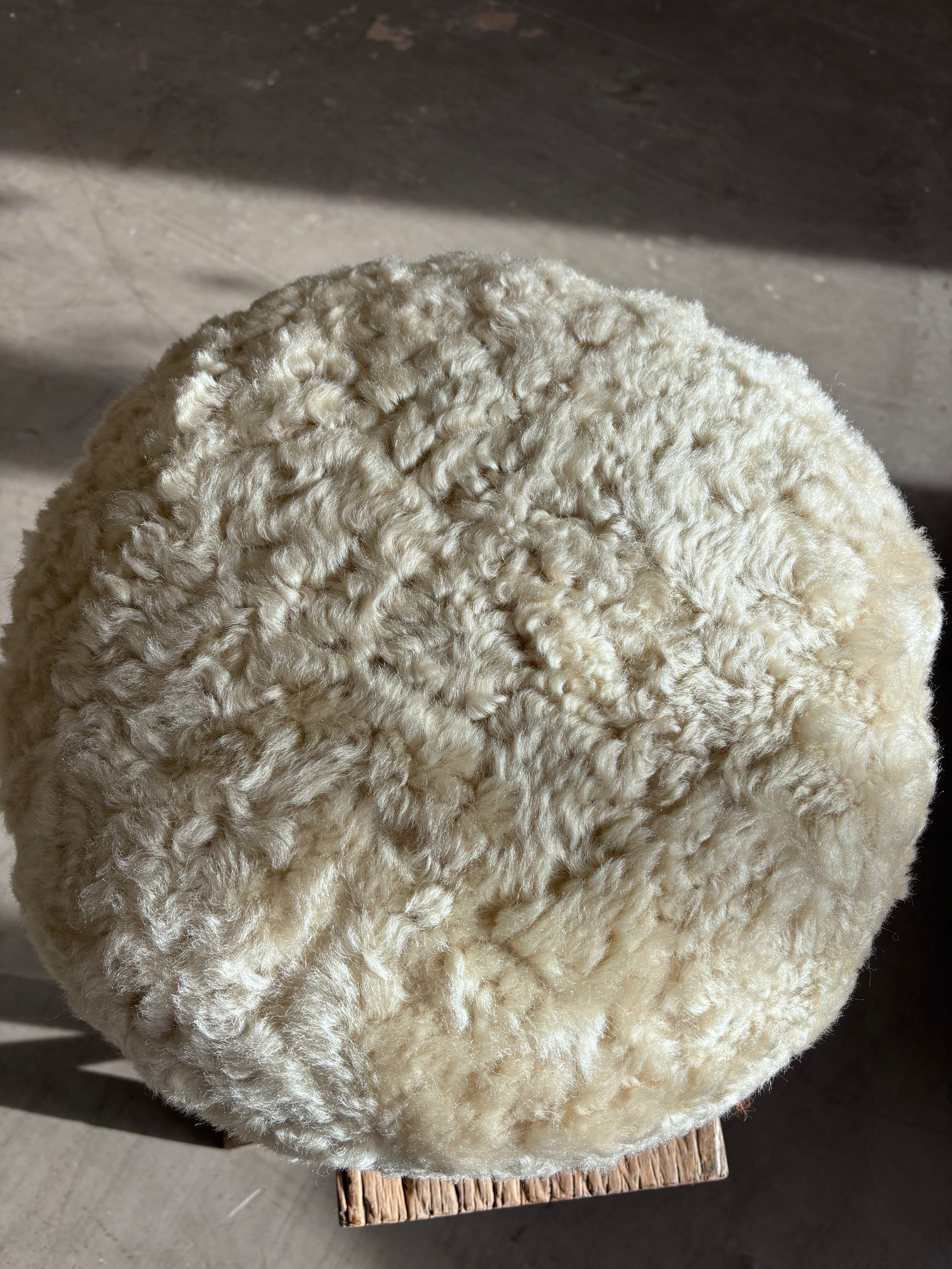 Indulge in luxurious comfort with our sheepskin foot stool. Crafted by hand by our neighbours Devonia the oldest Tannery in Britain on the edge of Dartmoor. These soft, sheepskin pouffes, add warmth and texture to any space. Its plush boucle style, dense pile provides a cosy retreat for you to relax on, the beautiful natural markings makes each one unique and effortlessly complements any interior style. Elevate your home with the timeless elegance of our sheepskin footstool.