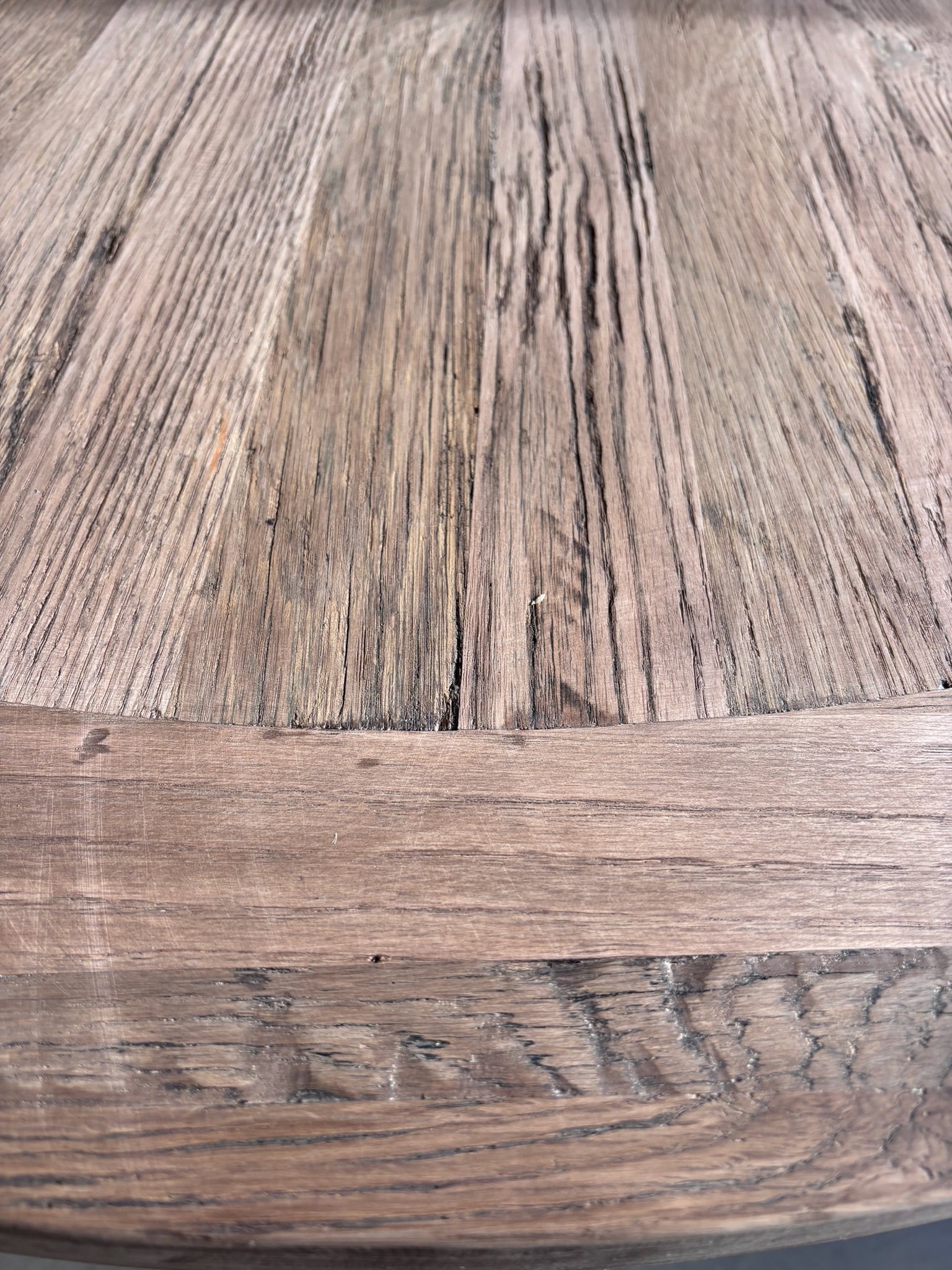 Every table is inherently unique, distinguished by natural erosion, and patina that can only be achieved through decades of use. No two tables are ever identical; each bears unique markings, textures, and contours, allowing it to serve as both a functional centrepiece and an expressive work of art.