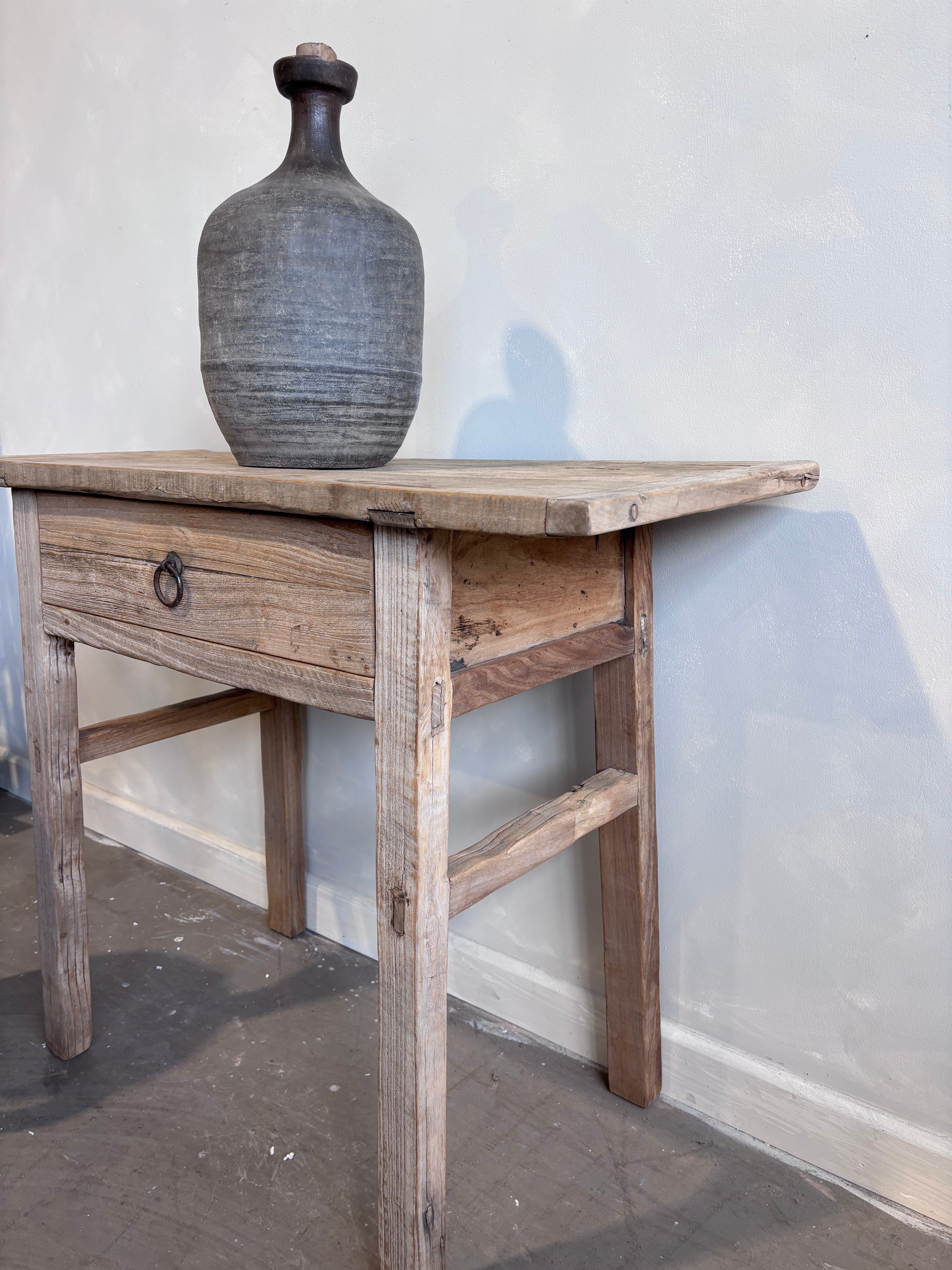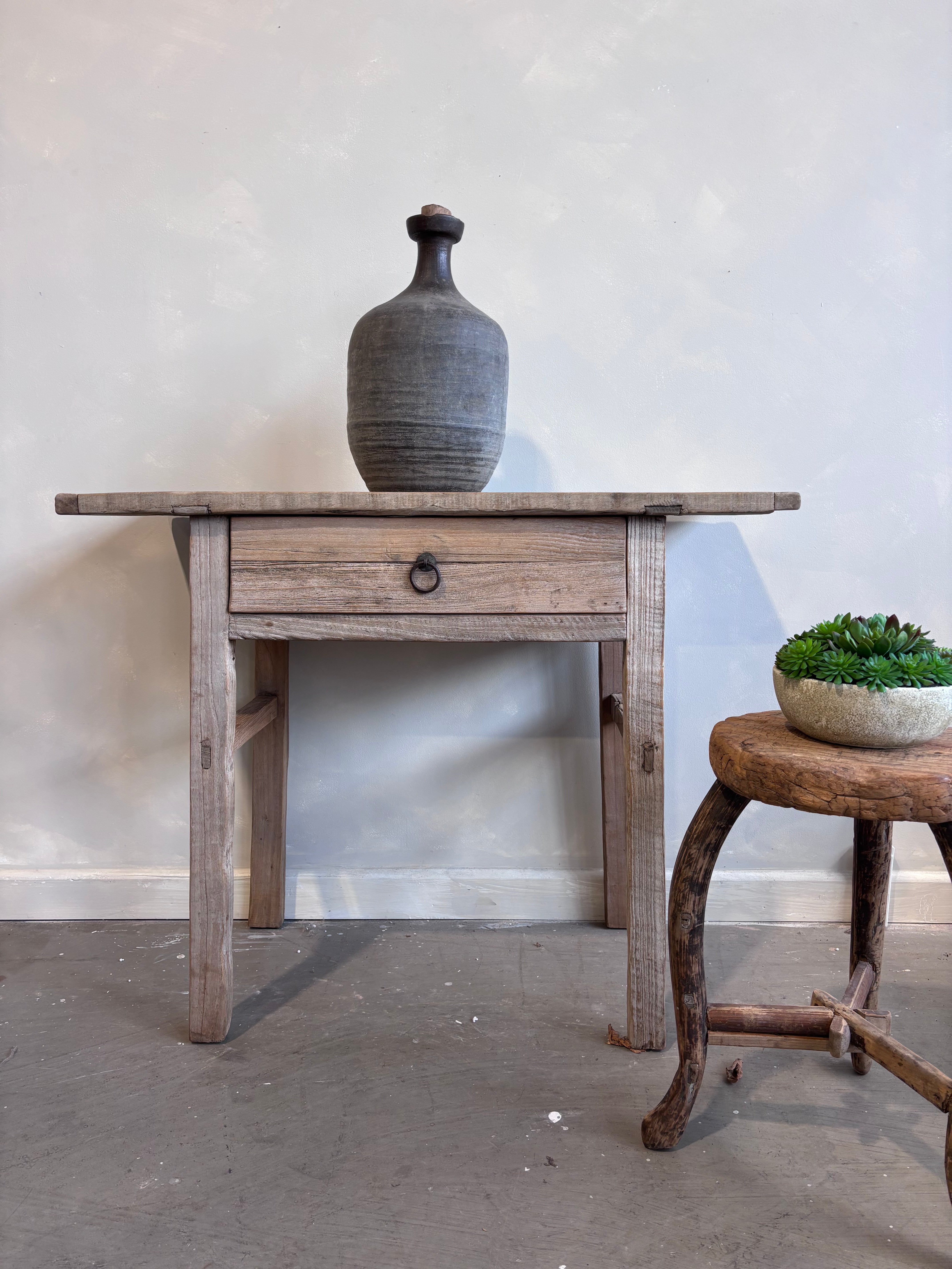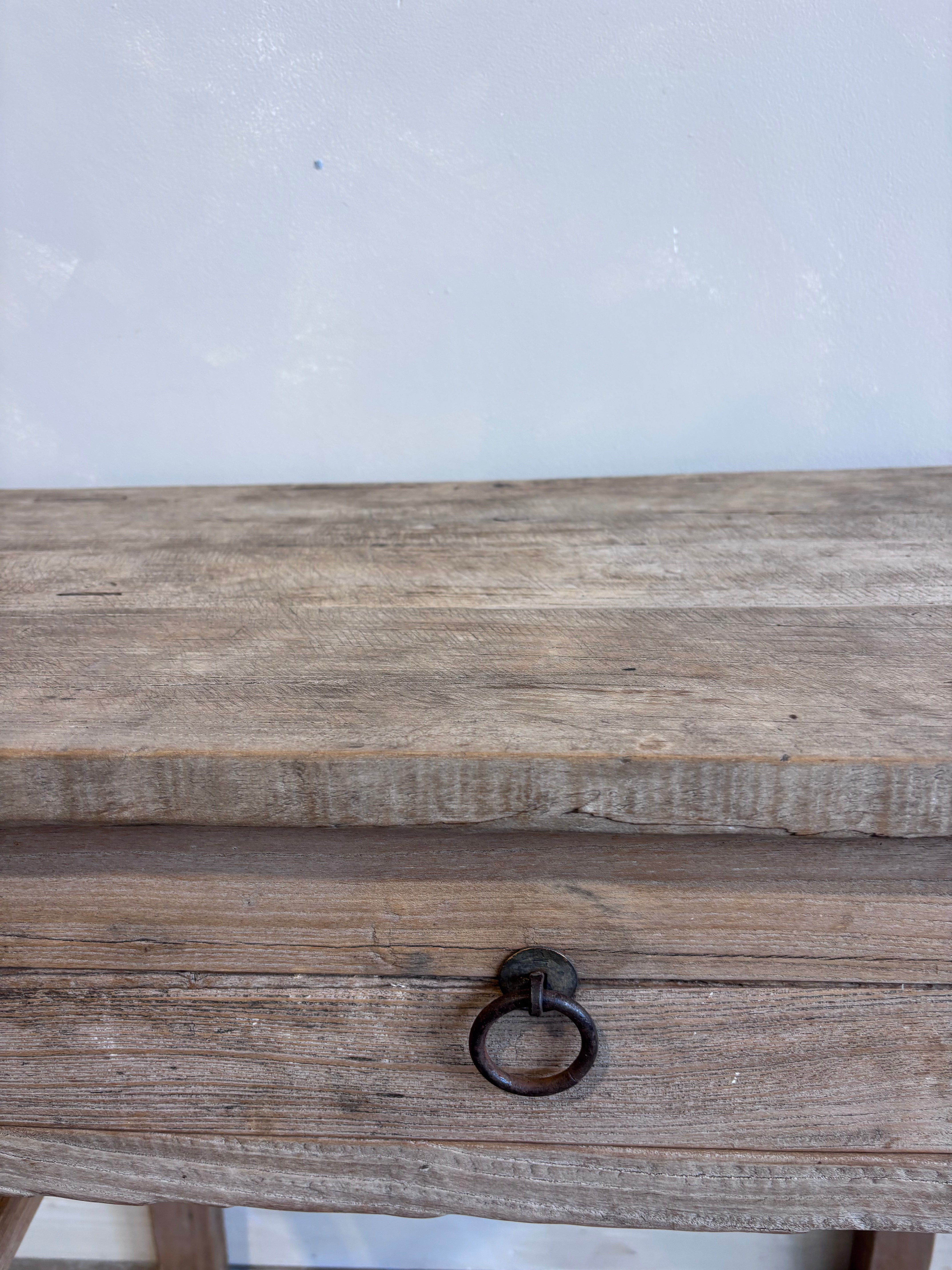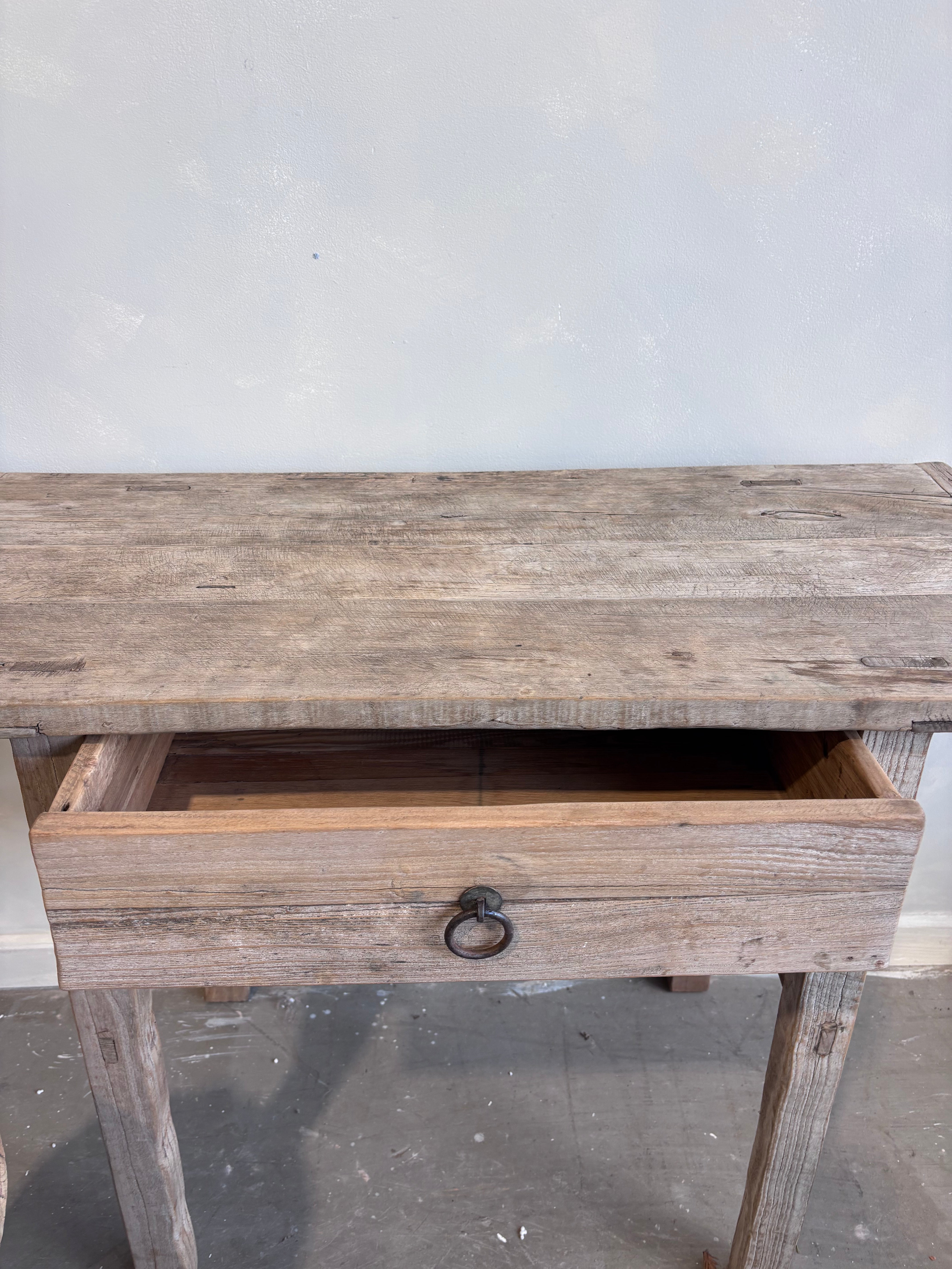Bring character and charm to your home with this vintage elm console table it is the perfect companion for the modern bohemian or coastal home.   One spacious drawers provide practical storage.