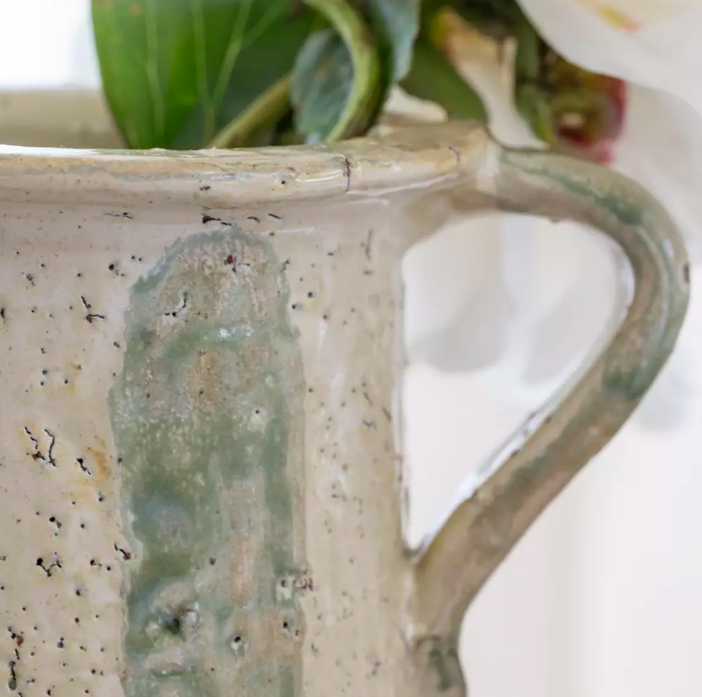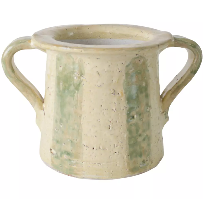 Bring a fresh, vibrant touch to your space with our ceramic stripey pot with handles featuring a crème and green stripe design. This stylish pot combines functionality with eye-catching style. The bold green stripe detail adds a lively pop of colour, making it perfect for showcasing plants, herbs, or flowers both indoors and outdoors. The sturdy handles provide easy transportation and handling, while the spacious interior offers ample room for your favourite greenery. Crafted with durability in mind, this decorative pot is a versatile addition to your home, garden, or patio décor, adding a touch of colour and practicality to any setting.