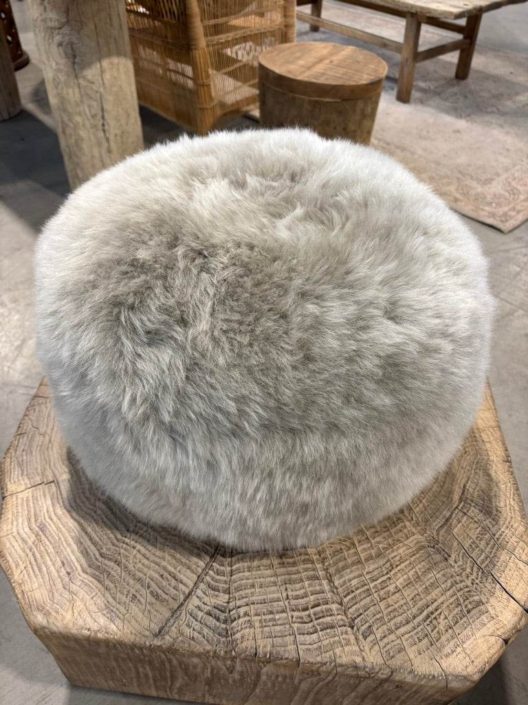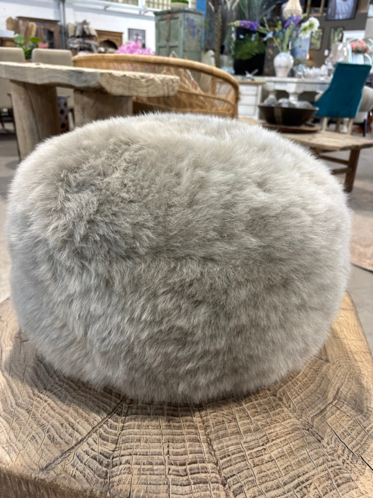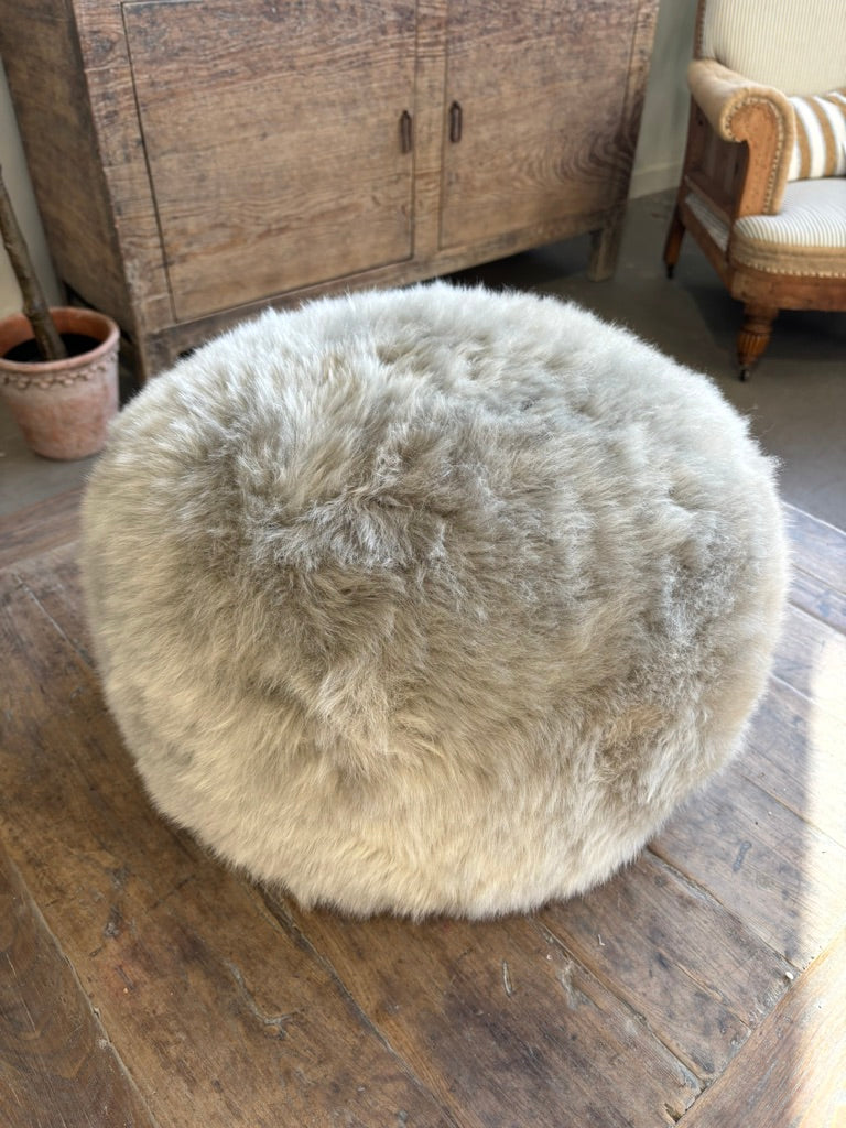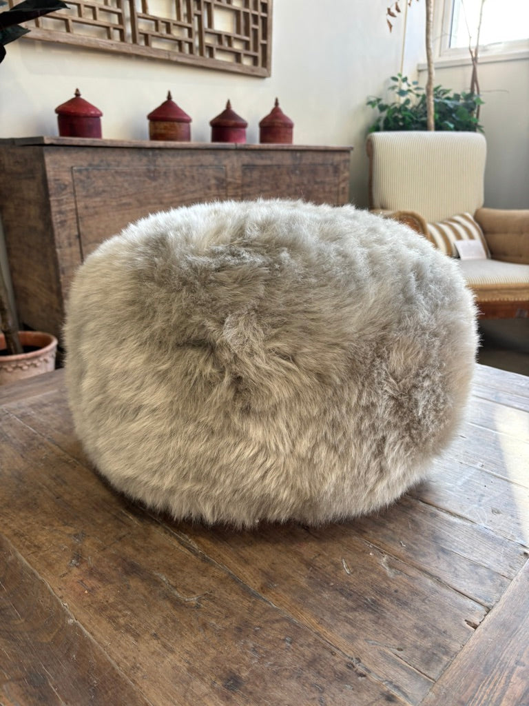 Taupe Sheepskin Pouffe