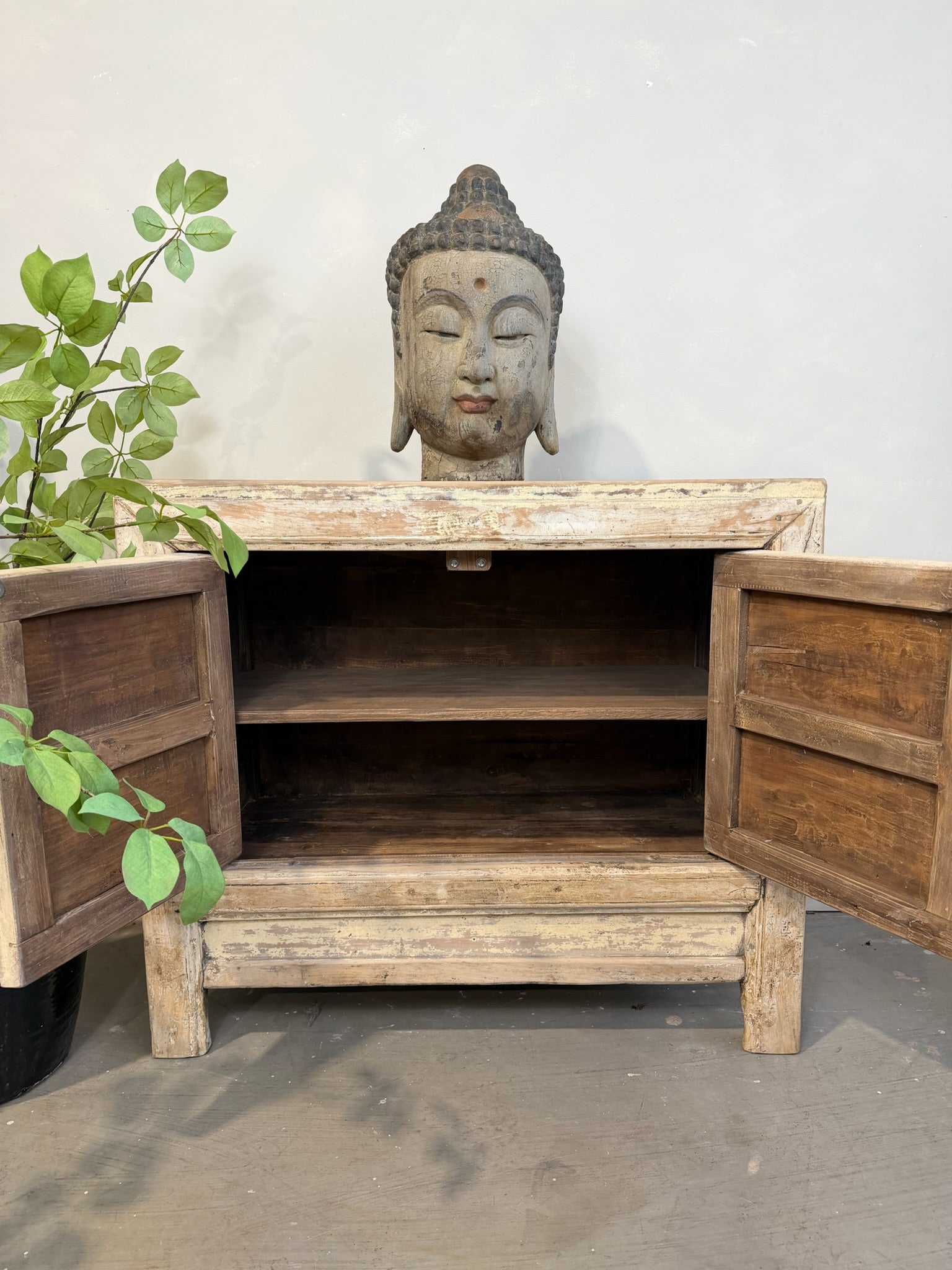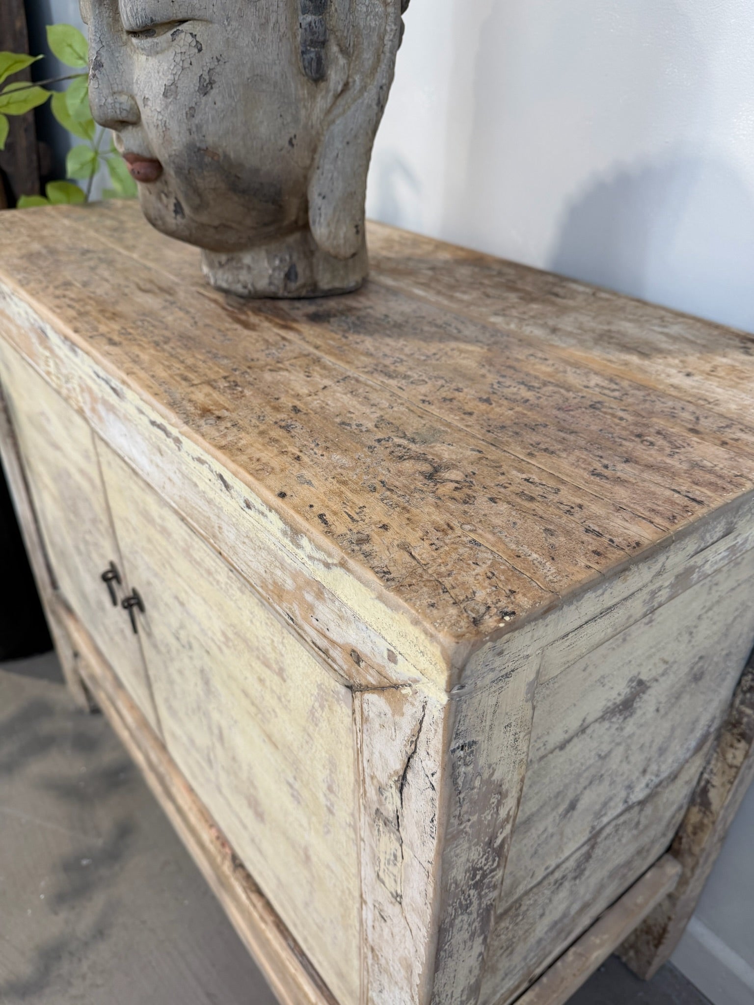 Handcrafted from solid wood, this piece has been thoughtfully revived to celebrate its rich heritage. Unique original top opening along with the two doors. The beautifully aged grain, deep patina, and authentic imperfections tell a story only time can create, offering a warmth and texture that new furniture simply can't replicate.
