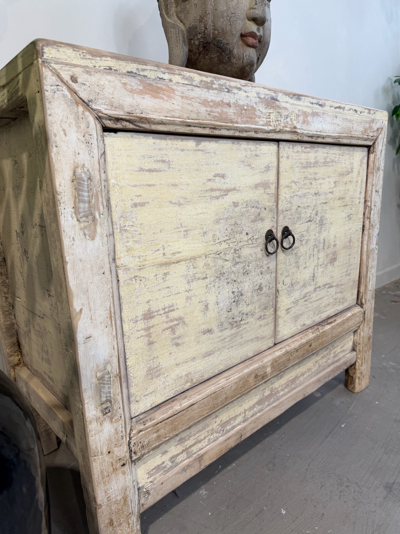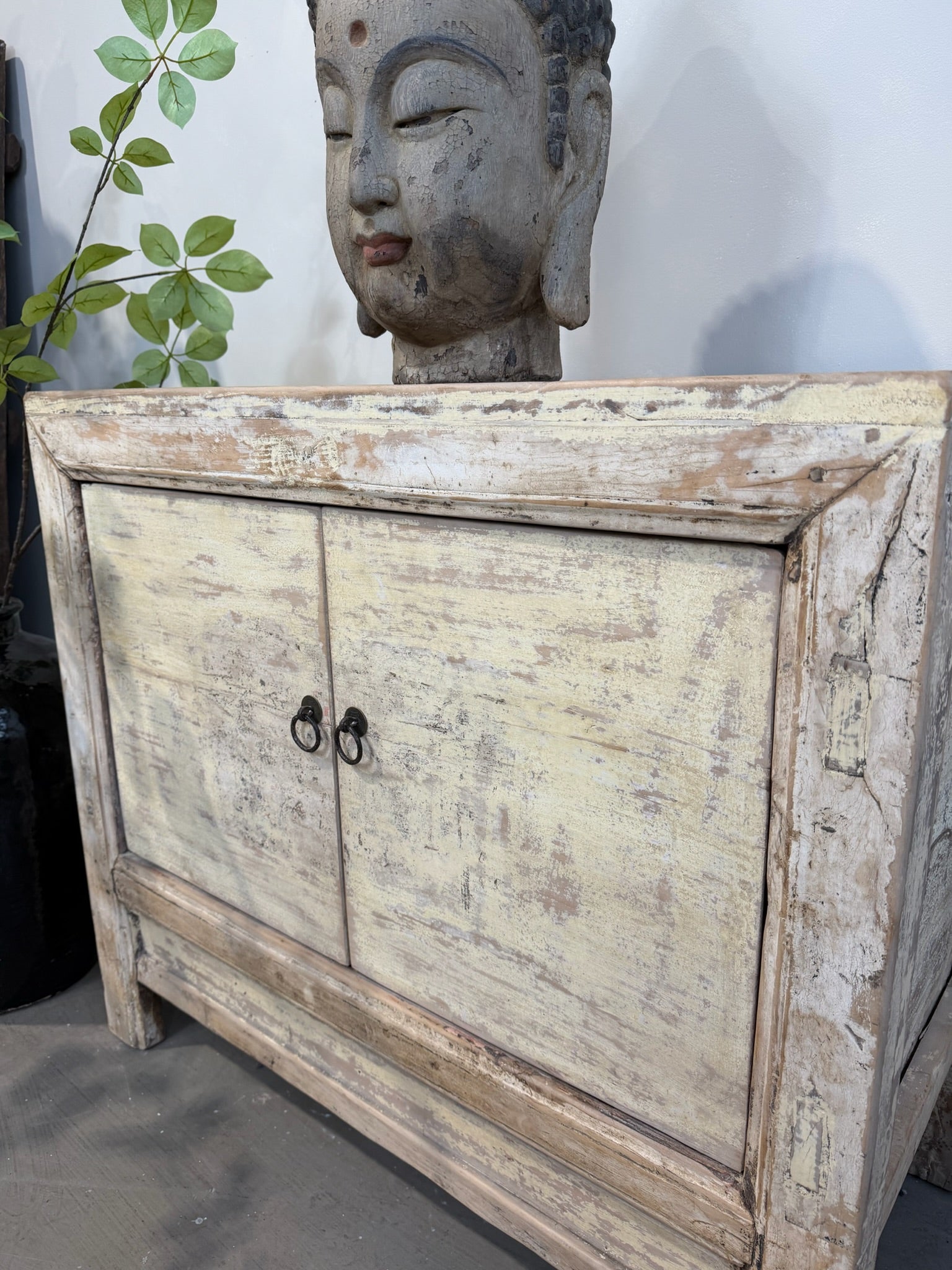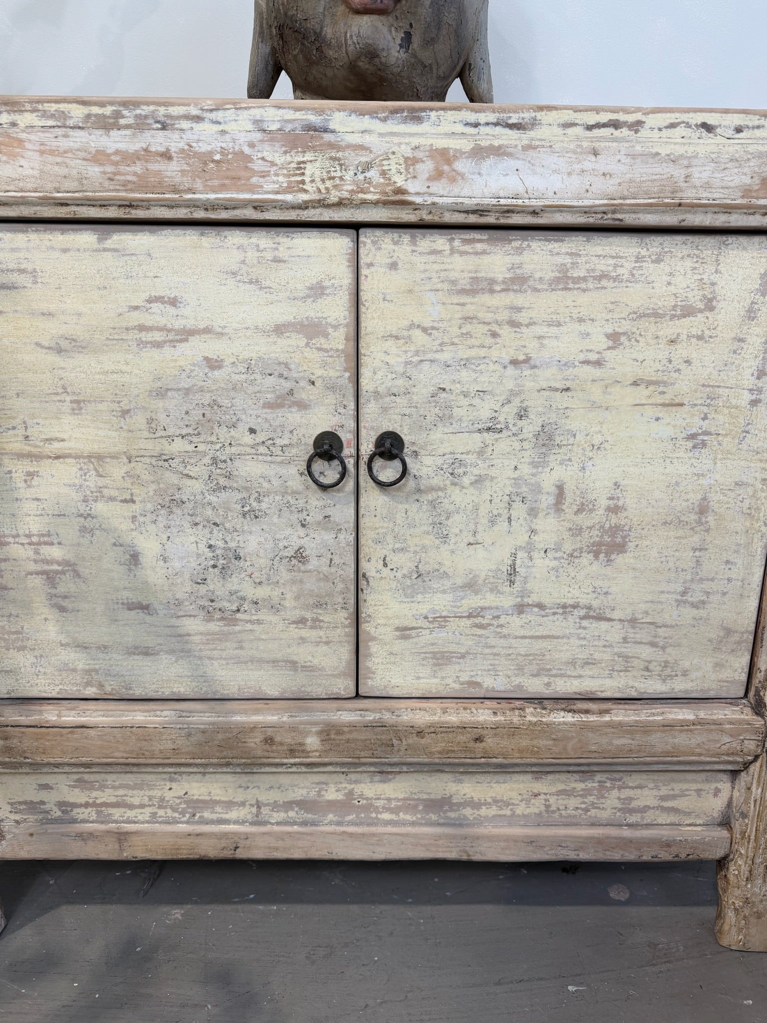 One off, featuring unique marks and subtle variations that highlight its past life and the careful artistry of its restoration. Doors and drawers making it as functional as it is beautiful.