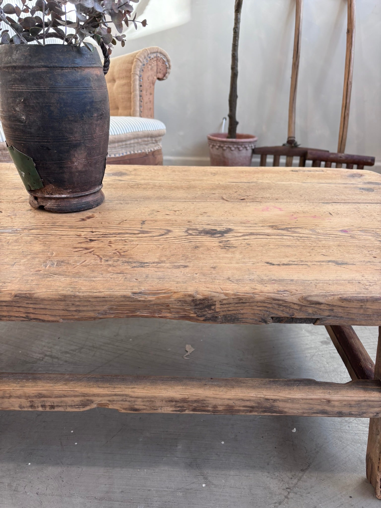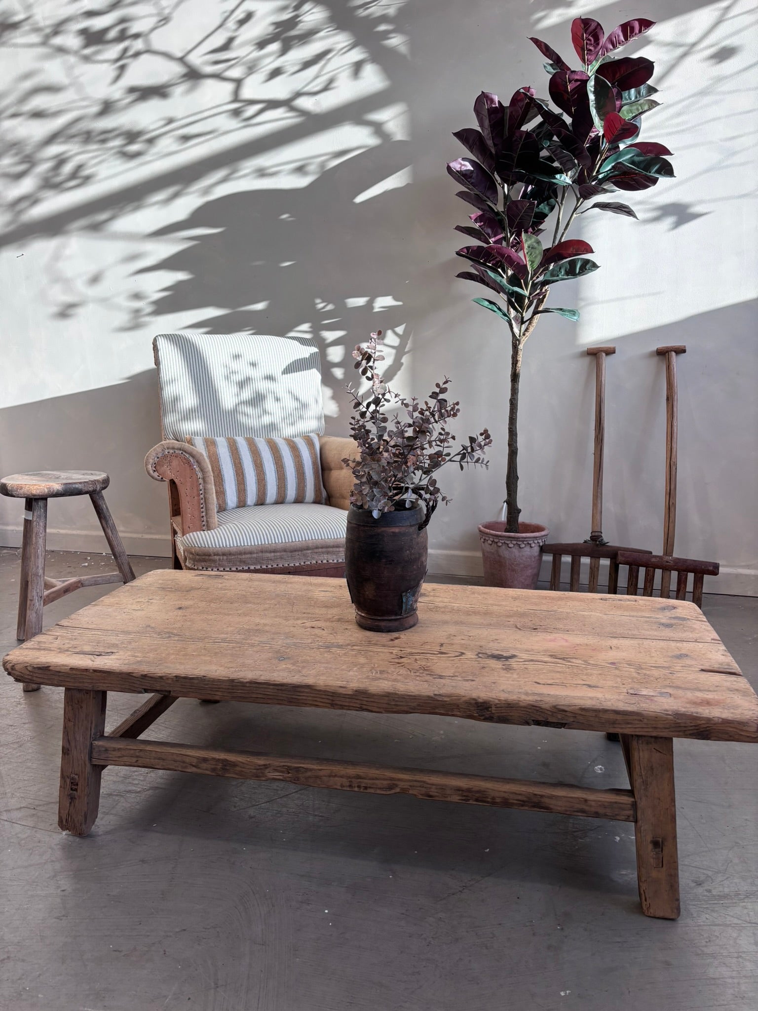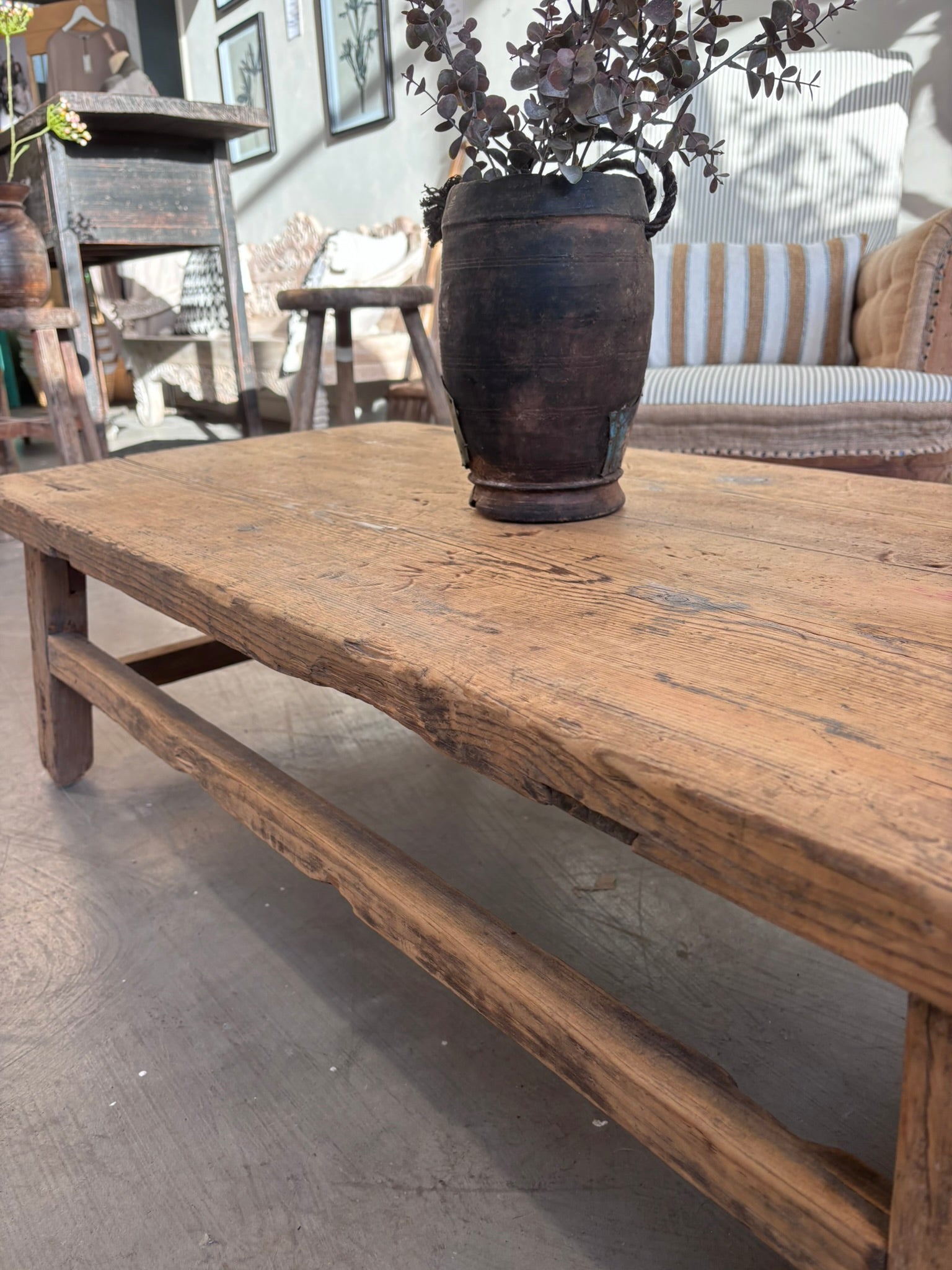 Each of our coffee tables is an authentic antique, handcrafted from elm and over a century old. Their timeworn surfaces tell a rich story of history and age, making every piece truly one of a kind.
