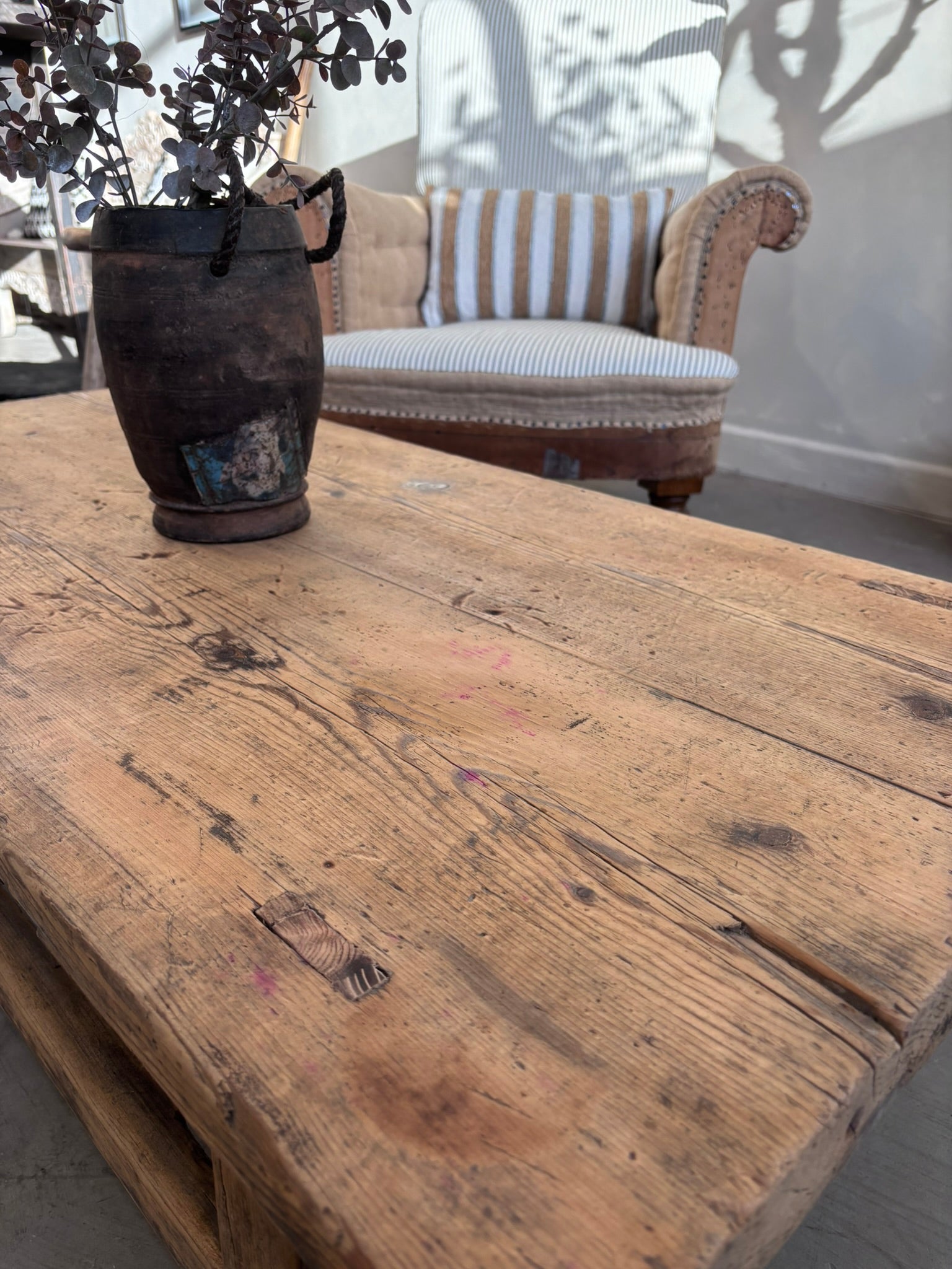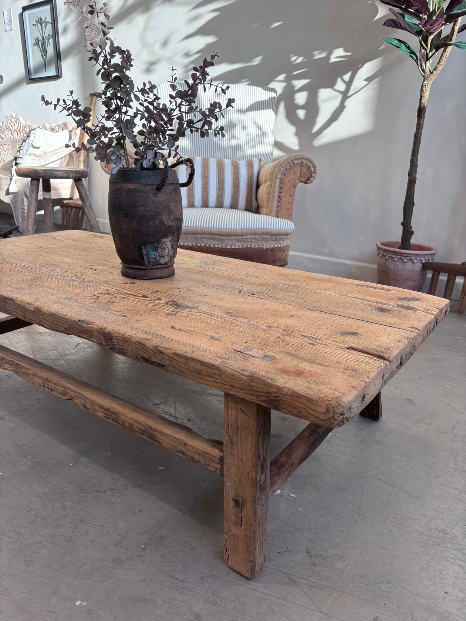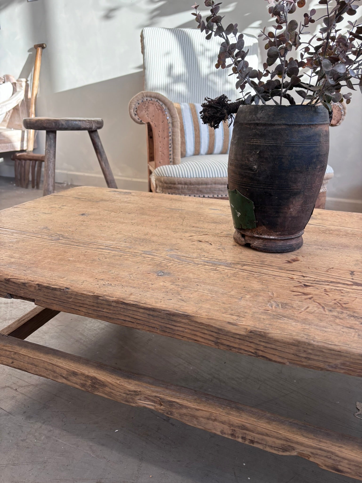Each of our coffee tables is an authentic antique, handcrafted from elm and over a century old. Their timeworn surfaces tell a rich story of history and age, making every piece truly one of a kind.